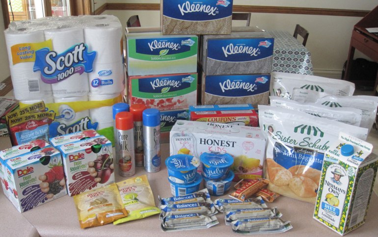 Another triple trip to price chopper using tripplers, how great that this deal is all week. Today we double teamed it, each going once. I have a feeling by the end of the week there are going to be many things in our pantry we won’t have to buy for years. Its nice to not have to worry about buying certain items , such as aluminum Foil, for years from now.
